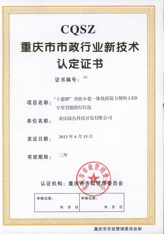 New technical certificate of Municipal Industry (ordinary street lamp is transformed into ten Hui br