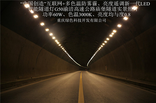 G50 Chongqing Chongqing Fuling expressway, Huang huangcaoshan concentric village, Fort Temple tunnel China creation "Internet plus color temperature and brightness. Anti fog and haze of a new generation of LED tunnel lights and remote intelligent control system for the implementation of energy-saving green lighting completed Newsletter