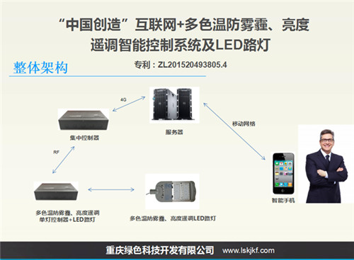多色溫防霧霾、亮度遙調(diào)新一代LED路燈應(yīng)用智能制造技術(shù)主要包括 “智能集中控制器”、“智能終端多色溫防霧霾、亮度可調(diào)控制器”、“多色溫防霧霾、亮度可調(diào)LED照明路燈”等硬件和“智能軟件編程”、“自動(dòng)感應(yīng)PM2.5傳感技術(shù)”、“溫度傳感技術(shù)”等新一代應(yīng)用智能制造技術(shù),同時(shí)兼容其它路燈遠(yuǎn)程智能控制系統(tǒng)功能。專利技術(shù)《互聯(lián)網(wǎng)+多色溫LED路燈、隧道燈六遙控制系統(tǒng)(ZL201520493805.4)》經(jīng)科技查新已獲得《科技查新報(bào)告》(報(bào)告編號:J201508016831),證明了是“中國創(chuàng)造”LED路燈應(yīng)用智能制造獨(dú)一無二的先進(jìn)技術(shù);該技術(shù)已列入《2015年度重慶市中小企業(yè)科技成果轉(zhuǎn)化項(xiàng)目》(渝中小企〔2015〕188號),并申請了LED智能控制技術(shù)重慶市工程研究中心【渝發(fā)改技〔2015〕1865號】。