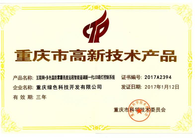 我司研發(fā)、制造的“互聯(lián)網(wǎng)+多色溫防霧霾亮度遠(yuǎn)程智能遙調(diào)新一代LED路燈控制系統(tǒng)”榮獲市高新技術(shù)產(chǎn)品認(rèn)證