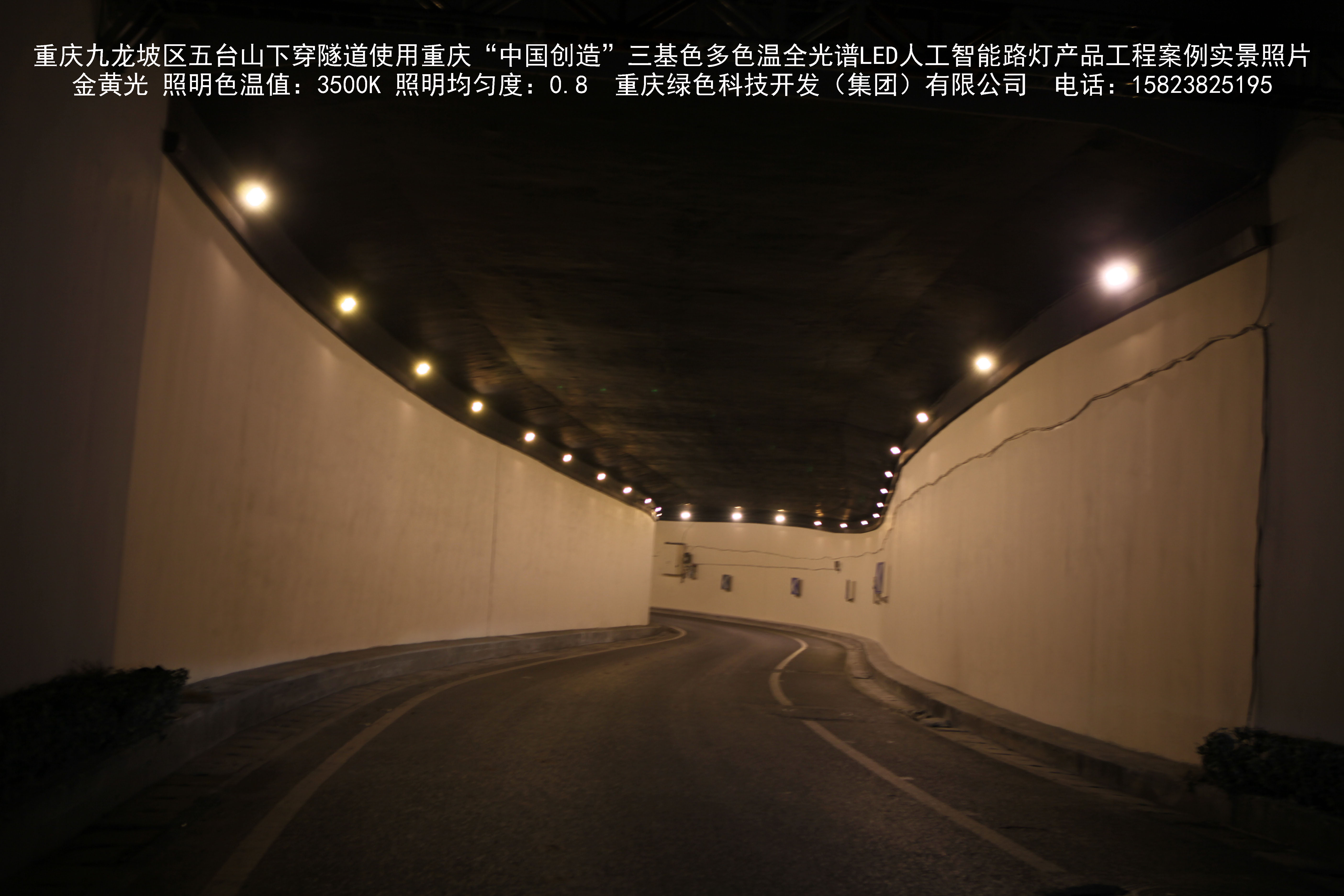 重慶市九龍坡區(qū)五臺山下穿隧道使用我司研造的重慶“中國創(chuàng)造” 三基色多色溫全光譜LED人工智能路燈產(chǎn)品工程案例