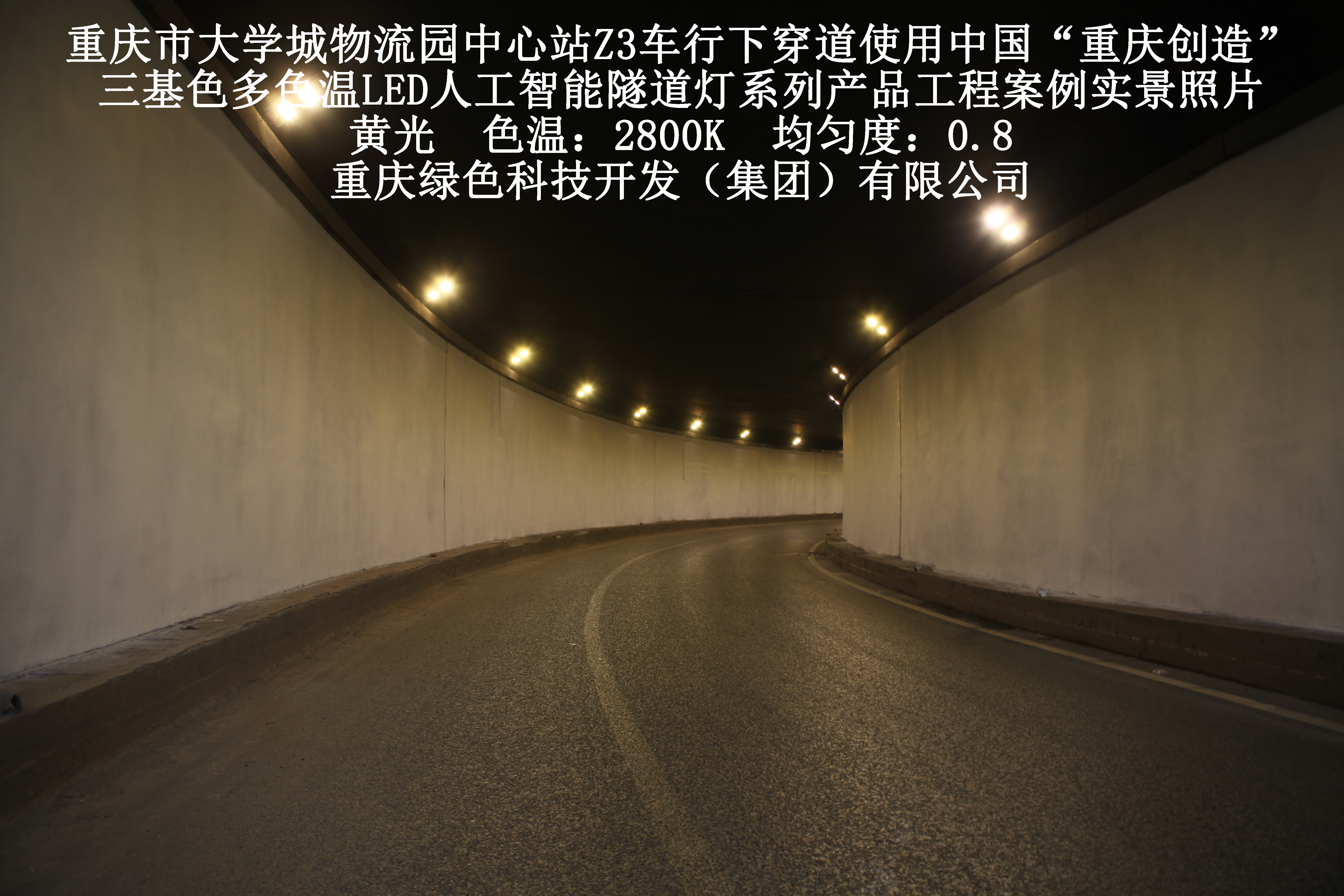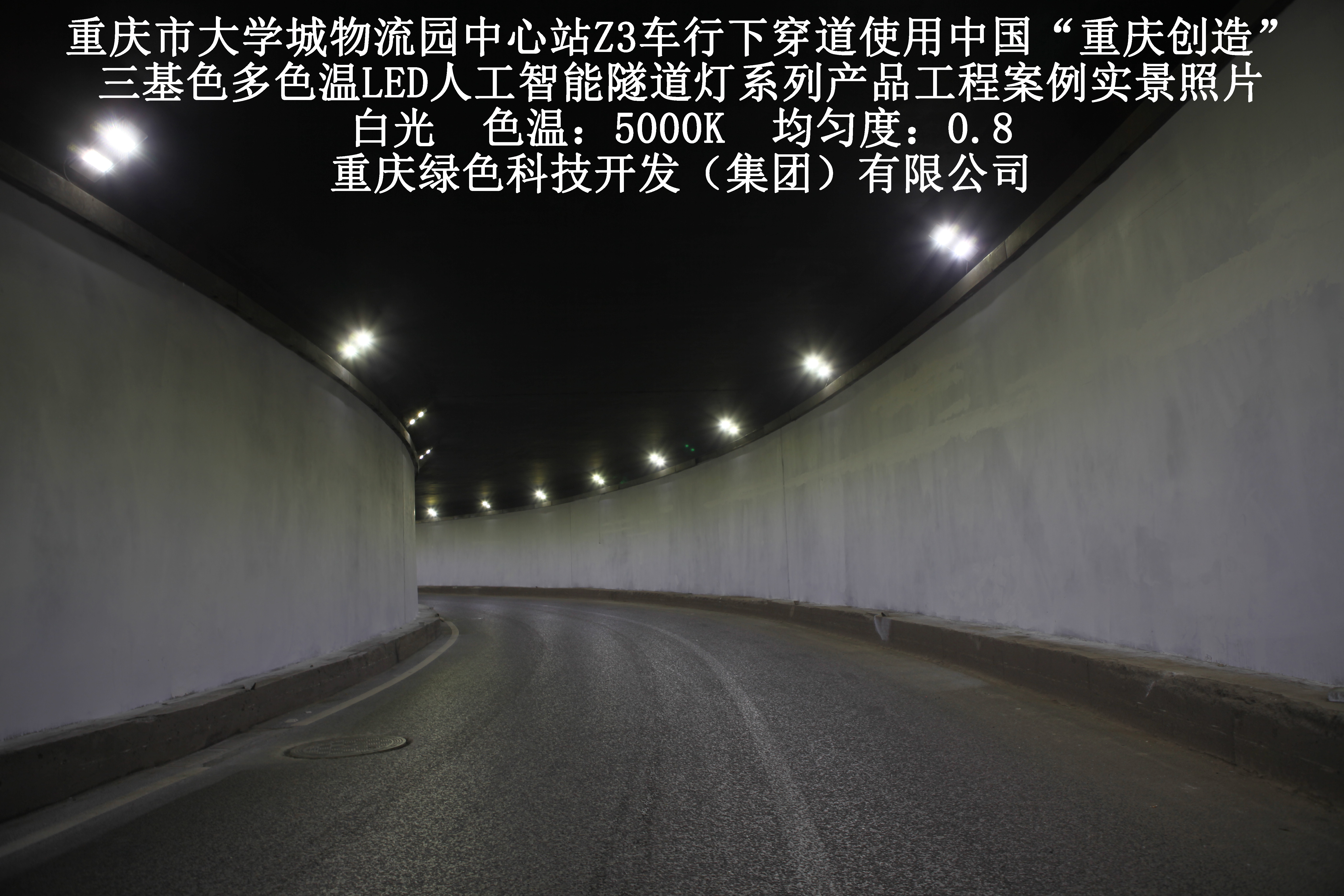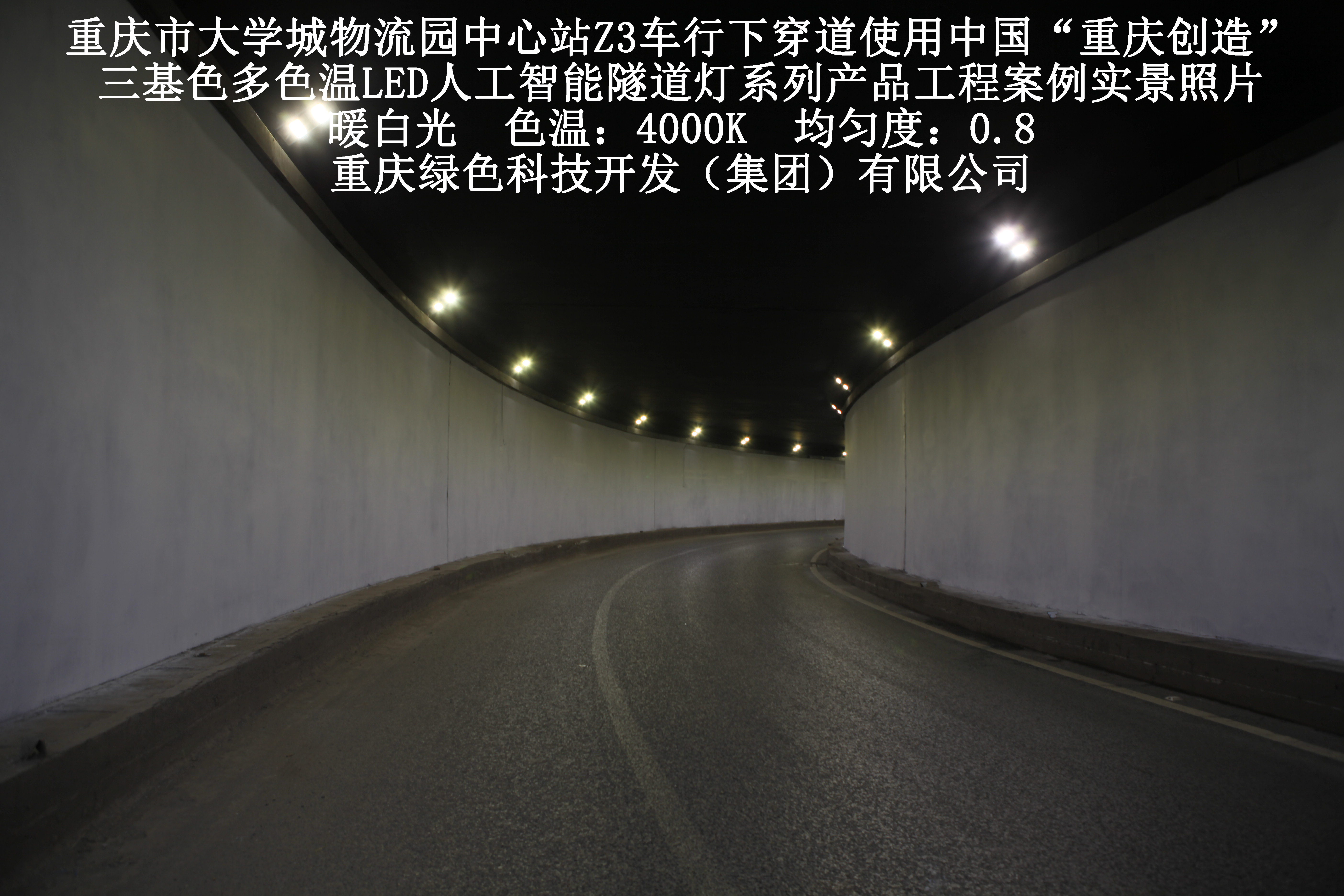 重慶市大學(xué)城物流園中心站Z3車行下穿道使用我司研造三基色多色溫LED人工智能隧道燈產(chǎn)品案例