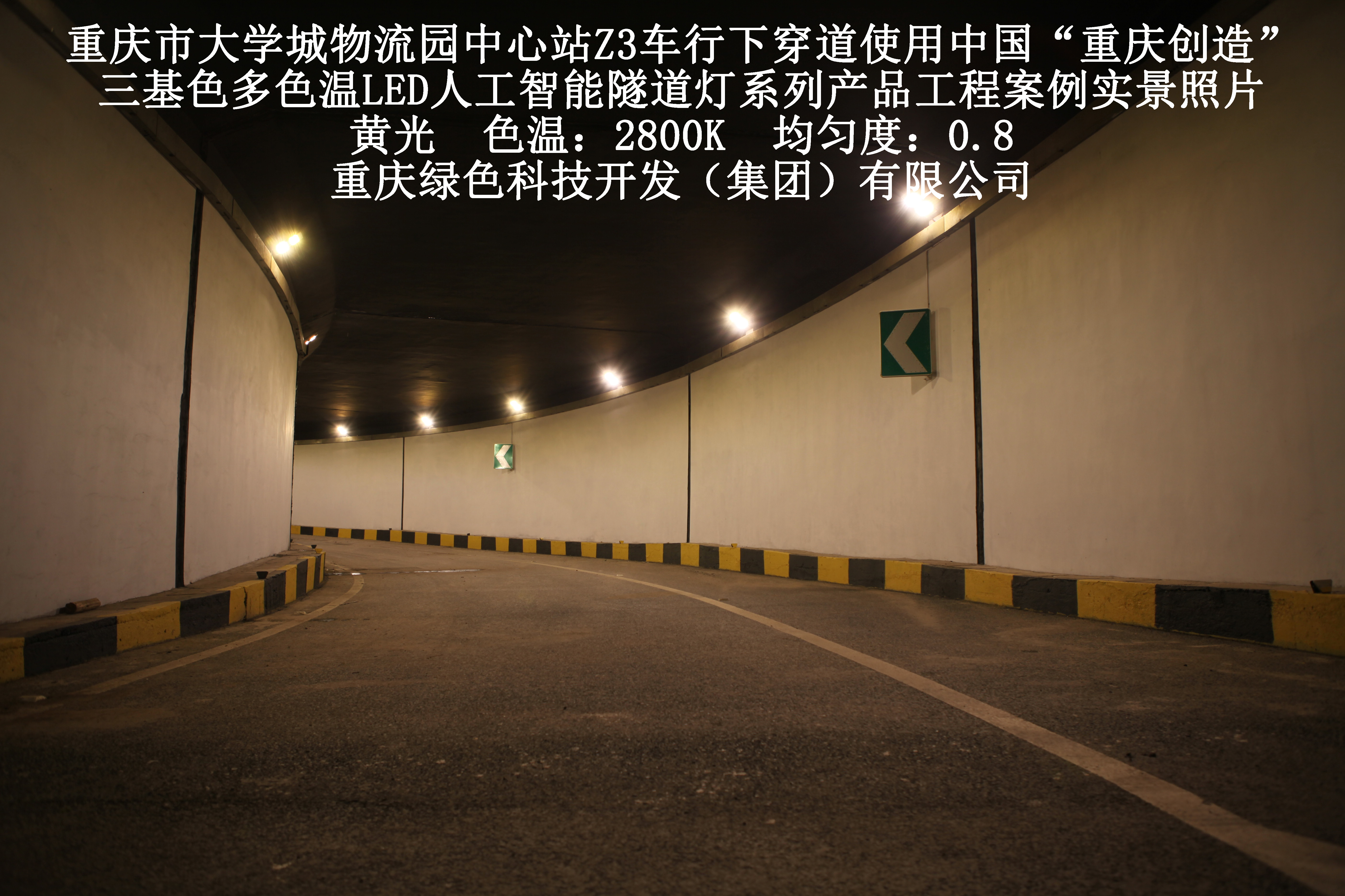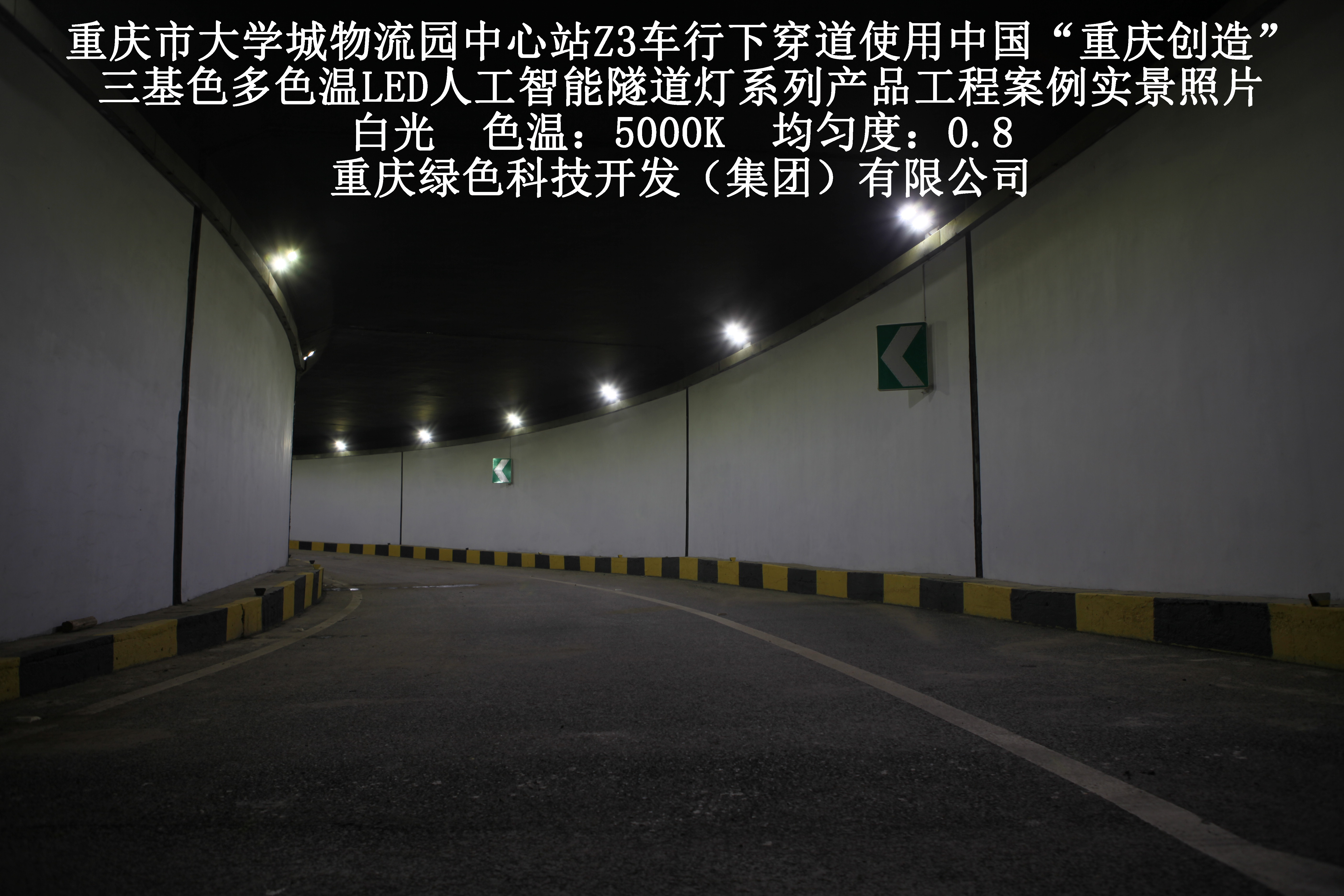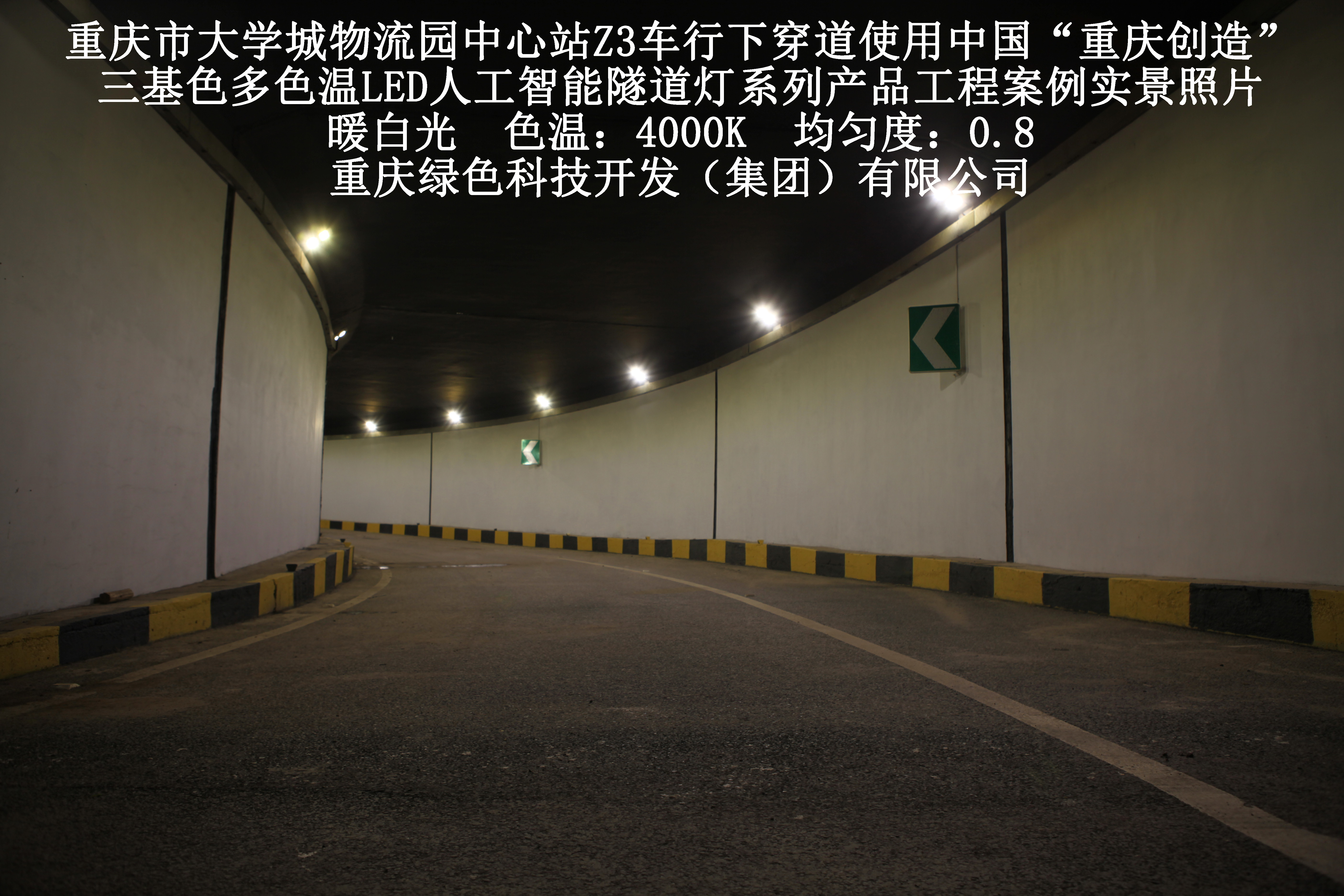 重慶市大學(xué)城物流園中心站Z3車行下穿道使用我司研造三基色多色溫LED人工智能隧道燈產(chǎn)品案例